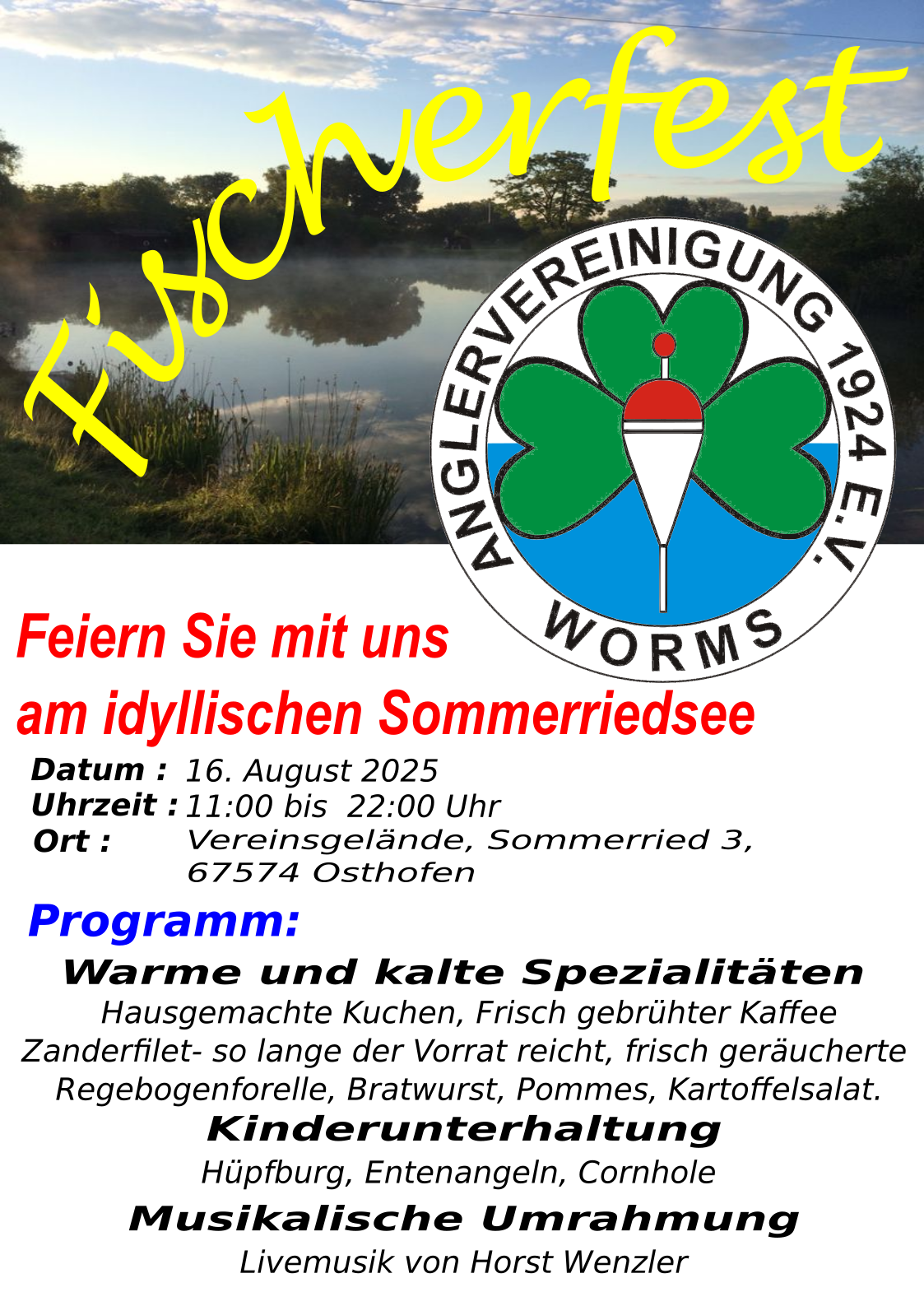 Am 16.08.2025 würden wir uns sehr freuen euch auf unserem Fischerfest begrüßen zu dürfen.